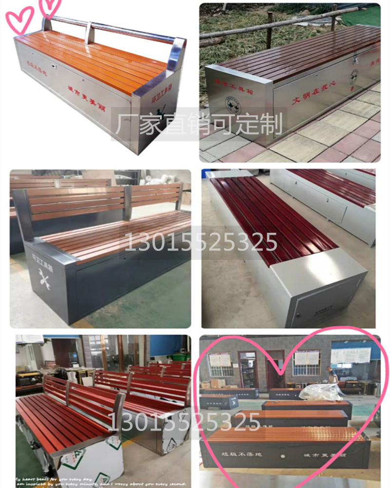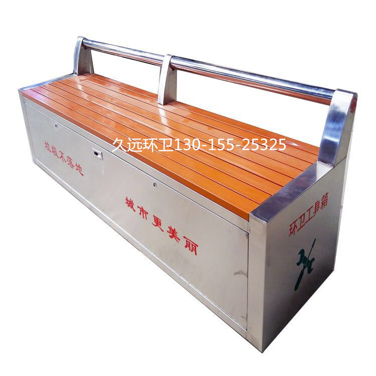 環(huán)衛(wèi)工具箱:也叫保潔員工具箱,環(huán)衛(wèi)工具椅,保潔員休息座椅,市政保潔箱等。工具箱常用尺寸為:長(zhǎng)2400*寬500*高550mm,也可以做成2米,2.4米,2.7米等,寬度和高度也可以定做,滿(mǎn)足不同客戶(hù)、不同場(chǎng)所的使用要求。