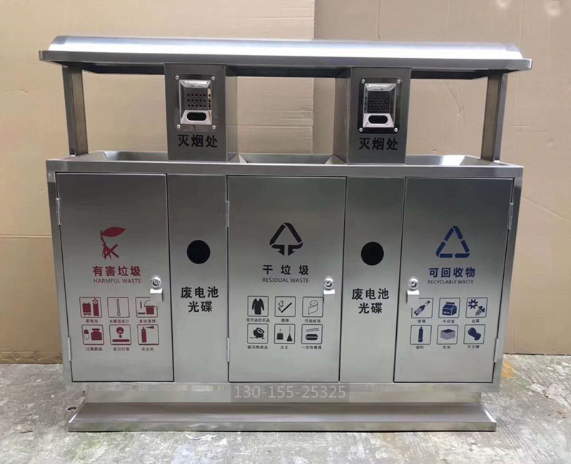 分類垃圾桶整體采用優(yōu)質(zhì)冷軋鋼板加工而成,表面經(jīng)過除油、噴砂防銹處理后,再進(jìn)行酸洗磷化處理;表面清理干燥后整體進(jìn)行靜電噴涂或烤漆處理,靜電噴涂是經(jīng)過流水線高溫固化爐固化后再出爐冷卻,加工后的塑粉附著力強(qiáng),不易剝落。